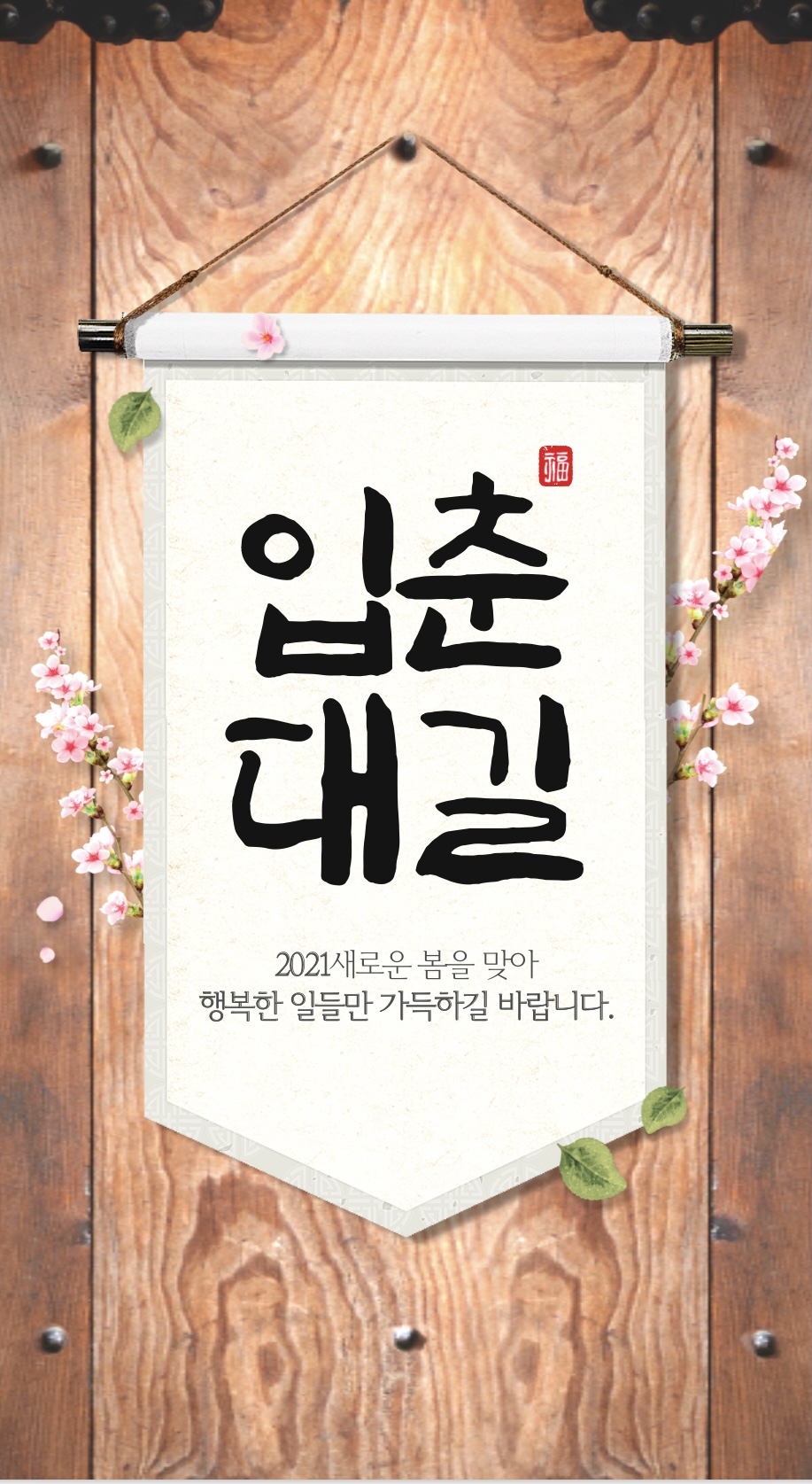 '봄이 시작되니 크게 길하고 경사스러운 일이 많이 생기기를 기원합니다'라는 의미를 담고 있는데요..